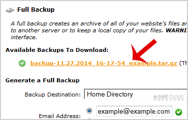 After the cPanel backup is completed, you will receive notification and the backup will be available for download under the "Available Backups To Download" list on the Full backup page.