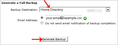 4. From the dropdown menu, select the backup destination as "Home" and enter your email address in the e-mail field so that you can receive notification when the backup is complete.
