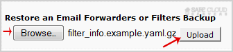 5. Click on "Browse", select your backup file from your PC, and click on the "Upload" button.