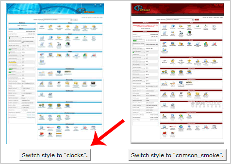 1. We assume you are already logged into your cPanel account. In your cPanel account near the top header of the page you should see a "Switch Theme" option with dropdown menu.