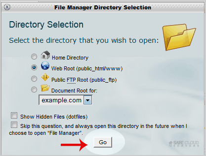 3. A small Window will be prompt you to select a domain or folder location. Should you have a number of domains or addons, select the appropriate domain name or folder location, and press the "ok" button.