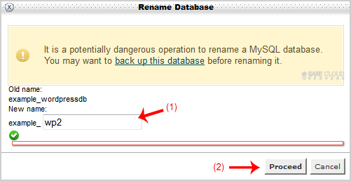 4. Change database name and then click on "Proceed" button.