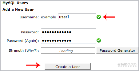 3. Under "MySQL Users" in the "Username" field enter the new username you wish to create.
