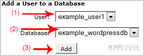 3. Scroll down to the end of the page and under "Add a User to a Database", select a user from the dropdown list, and then choose a Database from the list.