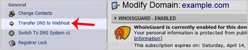 5. Click on "Transfer DNS to Webhost" (You can find this under the "General" section in the left hand side of the screen.)