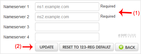 5. Enter your Nameserver in field 1 and field 2 and then click on the "Update" Button.
